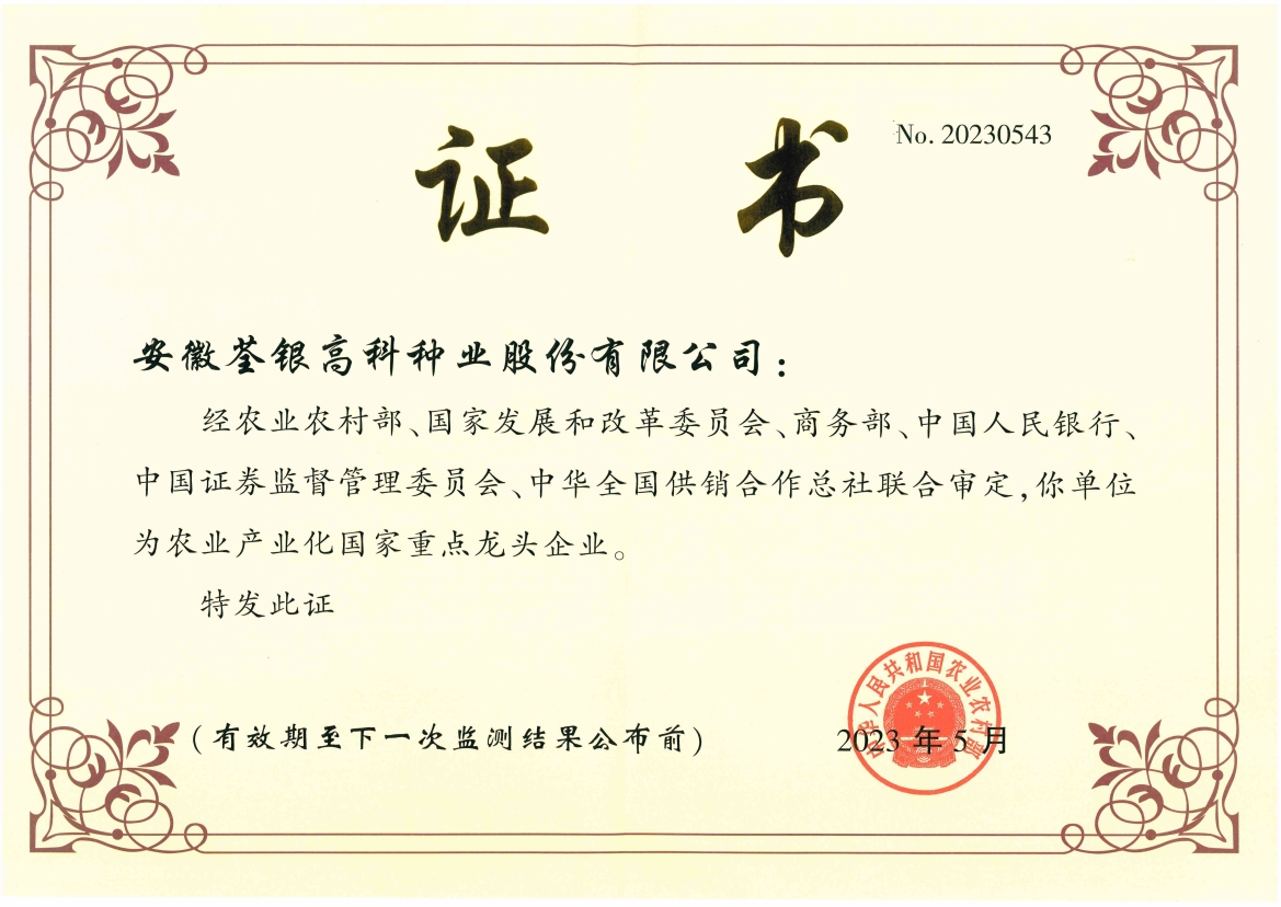 2025年07月安徽荃銀高科種業股份有限公司是一家“以種業為核心、農業服務為延伸、探索和創新農業多元化發展”的現代高科技種業上市公司,證券代碼:300087。公司注冊資金9.47億元,系“中國種業領軍企業、農業產業化國家重點龍頭企業、國家高新技術企業、農業部首批農作物種子育繁推一體化企業、中國種業信用明星企業"。在國內控股子公司20多家,在國外設立分支機構4家,良種銷售至全國20多個省(市、區),出口覆蓋20多個國家與地區,種業綜合實力、雜交水稻研發、推廣及海外業務規模均居全國種子企業前2位。